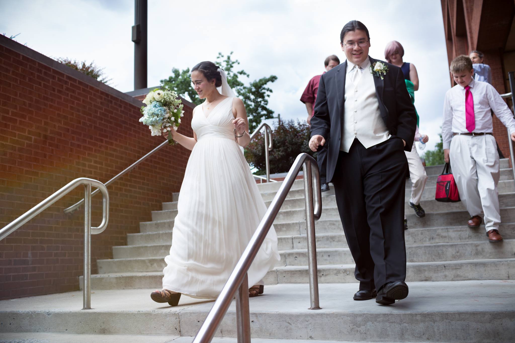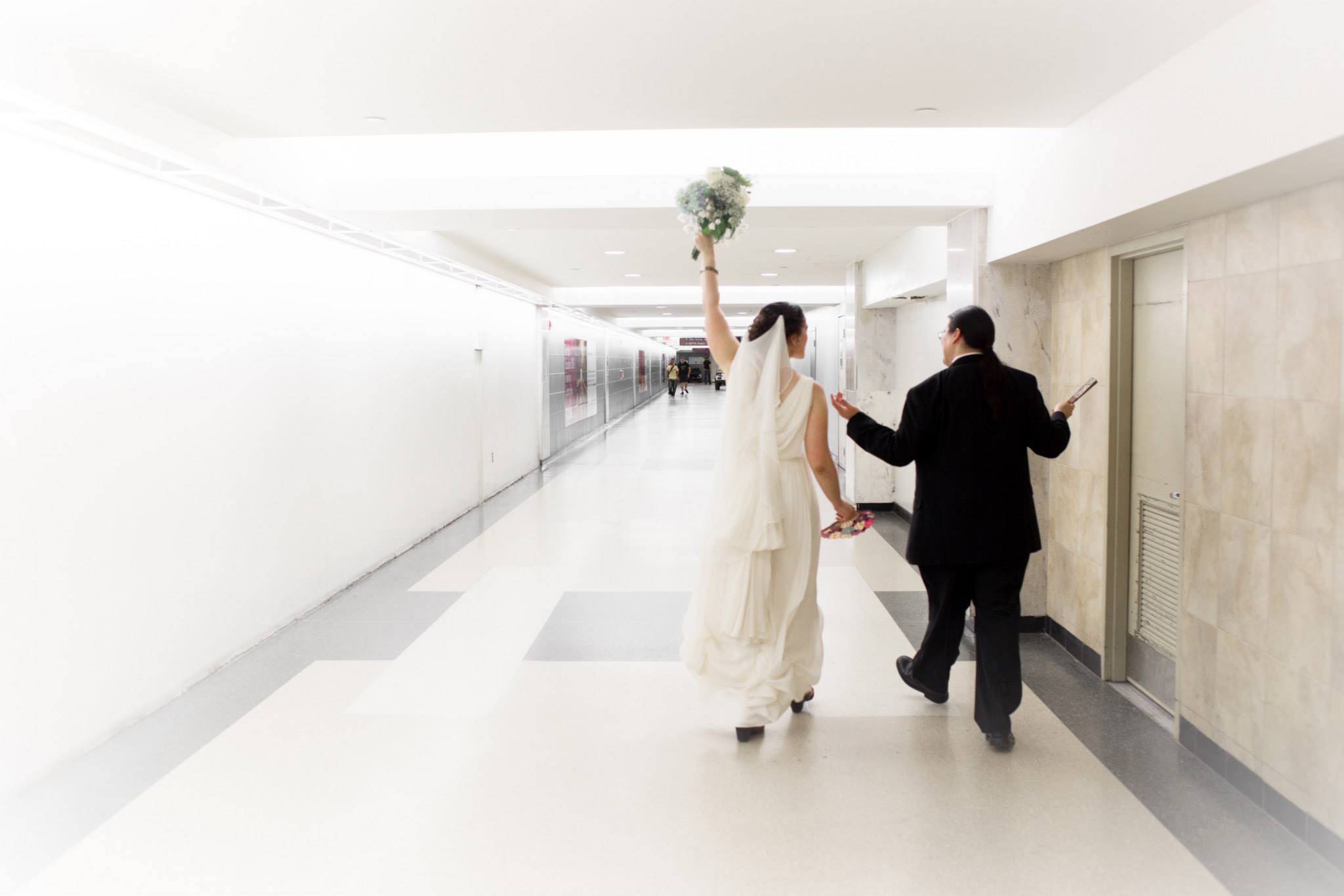 Descending into the El at 5th Street/Independence station. That’s me digging into my pocket for my Trailpass. The bride had tokens wired into her bouquet.